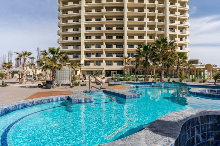 Individual sea side Palapas, Rental Check-in Area in Lobby, 2 Elevators, 2 New Swimming Pools with swim-up bar.